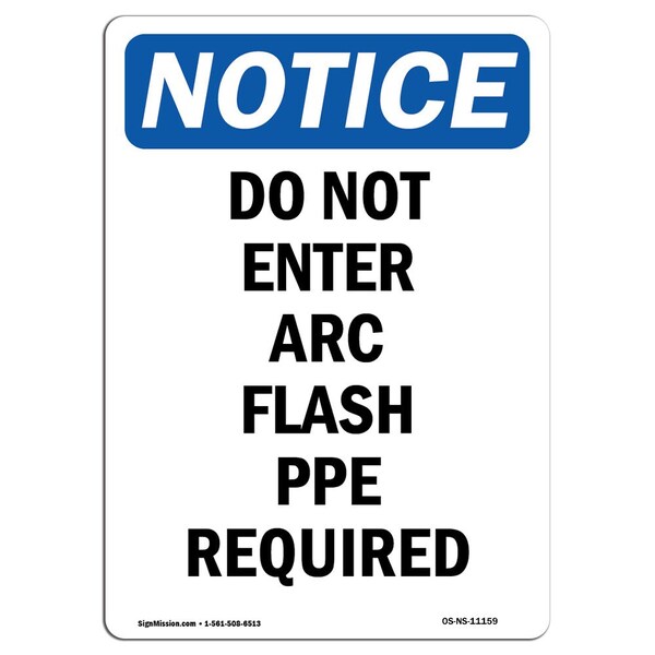 Safety Sign, OSHA Notice, 5" Height, Do Not Enter Arc Flash PPE Required Sign, Portrait