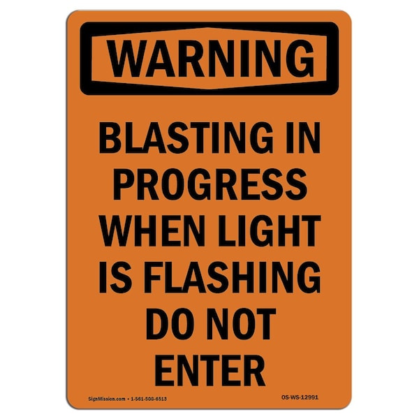 Safety Sign, OSHA WARNING, 10" Height, Blasting In Progress When Light, Portrait, D-V-12991