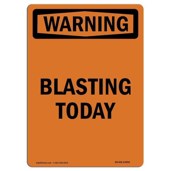 Safety Sign, OSHA WARNING, 10" Height, Blasting Today, Portrait