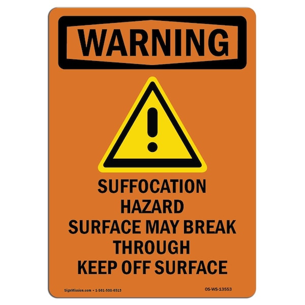 Safety Sign, OSHA WARNING, 24" Height, Suffocation Hazard, Portrait