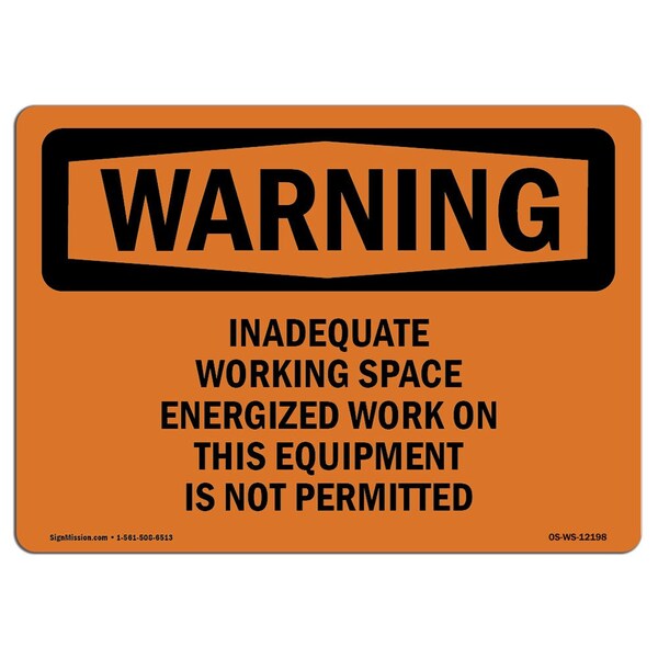 Safety Sign, OSHA WARNING, 3.5" Height, 5" Width, Inadequate Working Space Energized Work, Landscape