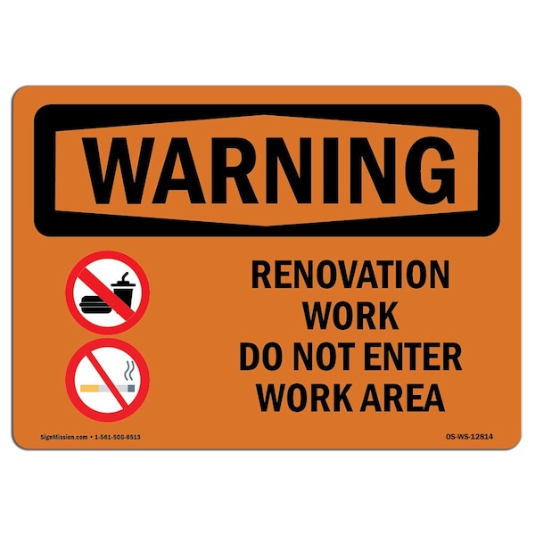 Safety Sign, OSHA WARNING, 5" Height, 7" Width, Renovation Work Do Not Enter Work Area, Landscape