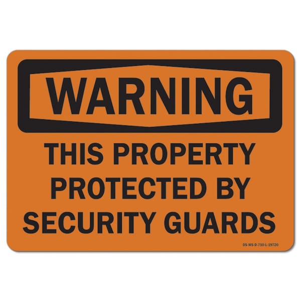 Safety Sign, OSHA Warning, 7" Height, 10" Width, This Prop Protect By Security Guards, Landscape