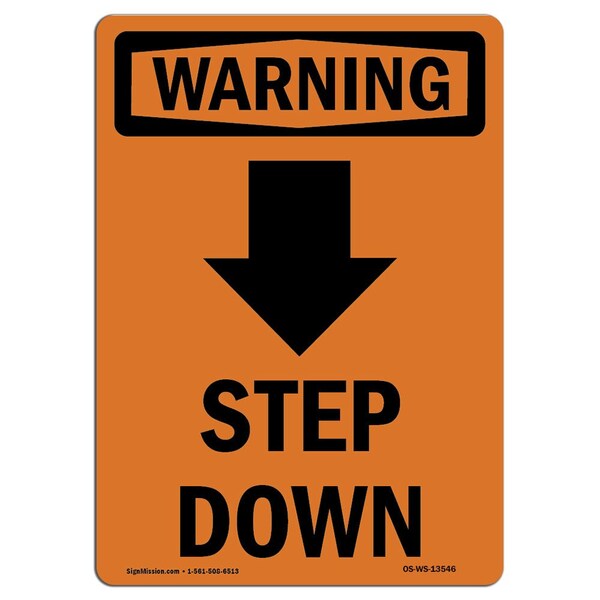 Safety Sign, OSHA WARNING, 7" Height, Step Down (Down Arrow), Portrait