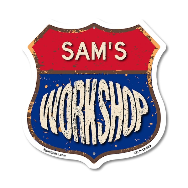 Add a Fun, Personalized Touch to Your Workshop with SignMission's Custom Shield-Shaped Signs Make your Workshop stand out with a sign that's not just eye-catching, but also full of personality! Our shield-shaped signs are the perfect way to add a touch of fun and style to your space. Featuring your name and a sleek, polished design, these signs are crafted to bring a modern, professional vibe to any Workshop, workshop, or man cave. With their bold look and durable commercial-grade plastic construction, they'll grab attention and give your space that extra bit of flair for years to come. Bring Modern Durability to Your Workshop Our shield-shaped signs aren't just stylish-they're designed with long-lasting, commercial-grade plastic that ensures both a sleek finish and unbeatable durability. Perfect for any indoor or outdoor space, these signs are resistant to cracking, fading, and weather damage. They come with pre-drilled holes for easy mounting, so you can display them effortlessly wherever they look best. Give your Workshop a polished and timeless appeal with a sign that combines charm and toughness. Our shield-shaped signs are expertly crafted to bring both style and resilience to your space while featuring your personalized touch.