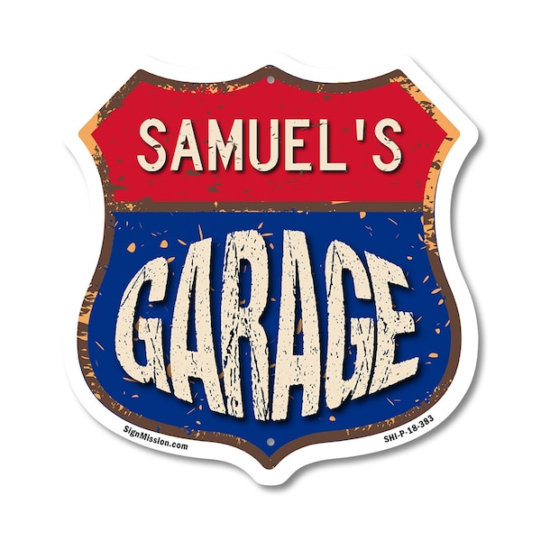 Add a Fun, Personalized Touch to Your Garage with SignMission's Custom Shield-Shaped Signs Make your garage stand out with a sign that's not just eye-catching, but also full of personality! Our shield-shaped signs are the perfect way to add a touch of fun and style to your space. Featuring your name and a sleek, polished design, these signs are crafted to bring a modern, professional vibe to any garage, workshop, or man cave. With their bold look and durable commercial-grade plastic construction, they'll grab attention and give your space that extra bit of flair for years to come. Bring Modern Durability to Your Garage Our shield-shaped signs aren't just stylish-they're designed with long-lasting, commercial-grade plastic that ensures both a sleek finish and unbeatable durability. Perfect for any indoor or outdoor space, these signs are resistant to cracking, fading, and weather damage. They come with pre-drilled holes for easy mounting, so you can display them effortlessly wherever they look best. Give your garage a polished and timeless appeal with a sign that combines charm and toughness. Our shield-shaped signs are expertly crafted to bring both style and resilience to your space while featuring your personalized touch.