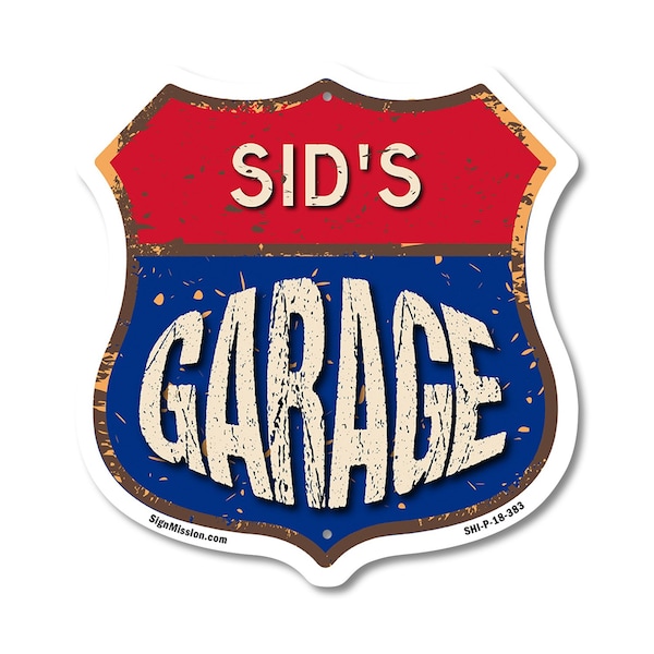Add a Fun, Personalized Touch to Your Garage with SignMission's Custom Shield-Shaped Signs Make your garage stand out with a sign that's not just eye-catching, but also full of personality! Our shield-shaped signs are the perfect way to add a touch of fun and style to your space. Featuring your name and a sleek, polished design, these signs are crafted to bring a modern, professional vibe to any garage, workshop, or man cave. With their bold look and durable commercial-grade plastic construction, they'll grab attention and give your space that extra bit of flair for years to come. Bring Modern Durability to Your Garage Our shield-shaped signs aren't just stylish-they're designed with long-lasting, commercial-grade plastic that ensures both a sleek finish and unbeatable durability. Perfect for any indoor or outdoor space, these signs are resistant to cracking, fading, and weather damage. They come with pre-drilled holes for easy mounting, so you can display them effortlessly wherever they look best. Give your garage a polished and timeless appeal with a sign that combines charm and toughness. Our shield-shaped signs are expertly crafted to bring both style and resilience to your space while featuring your personalized touch.
