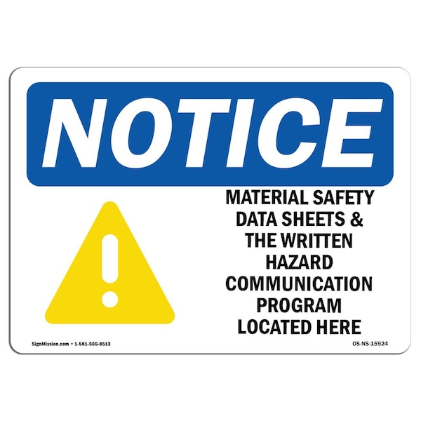 Sign, 10" H, 14" W, Rigid Plastic, NOTICE Material Safety Data Sheets Hazard Program Sign, Landscape