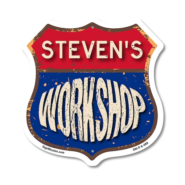 Add a Fun, Personalized Touch to Your Workshop with SignMission's Custom Shield-Shaped Signs Make your Workshop stand out with a sign that's not just eye-catching, but also full of personality! Our shield-shaped signs are the perfect way to add a touch of fun and style to your space. Featuring your name and a sleek, polished design, these signs are crafted to bring a modern, professional vibe to any Workshop, workshop, or man cave. With their bold look and durable commercial-grade plastic construction, they'll grab attention and give your space that extra bit of flair for years to come. Bring Modern Durability to Your Workshop Our shield-shaped signs aren't just stylish-they're designed with long-lasting, commercial-grade plastic that ensures both a sleek finish and unbeatable durability. Perfect for any indoor or outdoor space, these signs are resistant to cracking, fading, and weather damage. They come with pre-drilled holes for easy mounting, so you can display them effortlessly wherever they look best. Give your Workshop a polished and timeless appeal with a sign that combines charm and toughness. Our shield-shaped signs are expertly crafted to bring both style and resilience to your space while featuring your personalized touch.