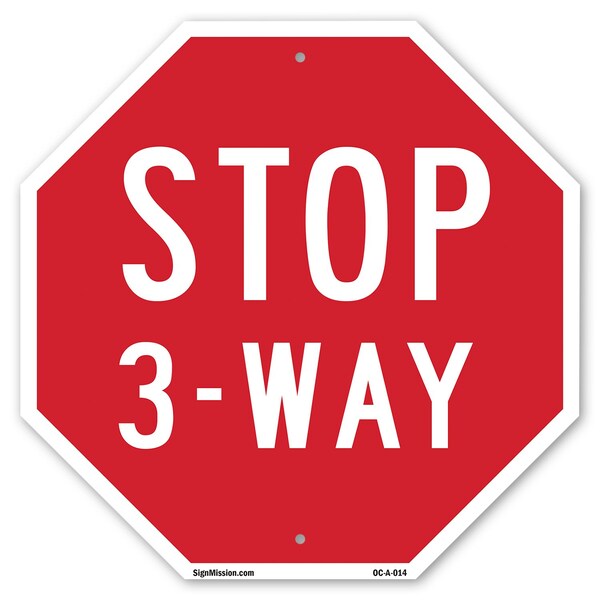 Stop 3-way, 6 Inch X 6 Inch, Plastic Sign