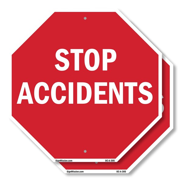 Stop Accidents, 6 inch X 6 inch, Plastic Sign, 2PK