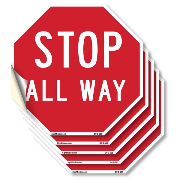 Stop All Way, 4 inch X 4 inch, Vinyl Decal, 5PK