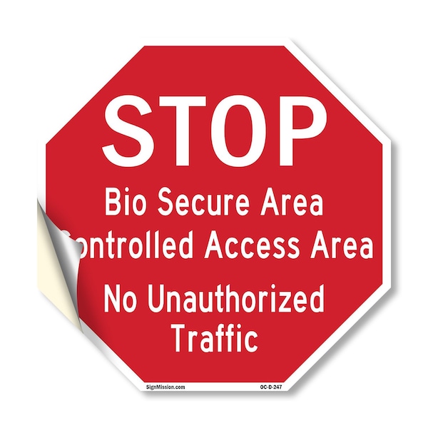 Stop Bio Secure Area Controlled Acc, 18 Inch X 18 Inch, Vinyl Decal