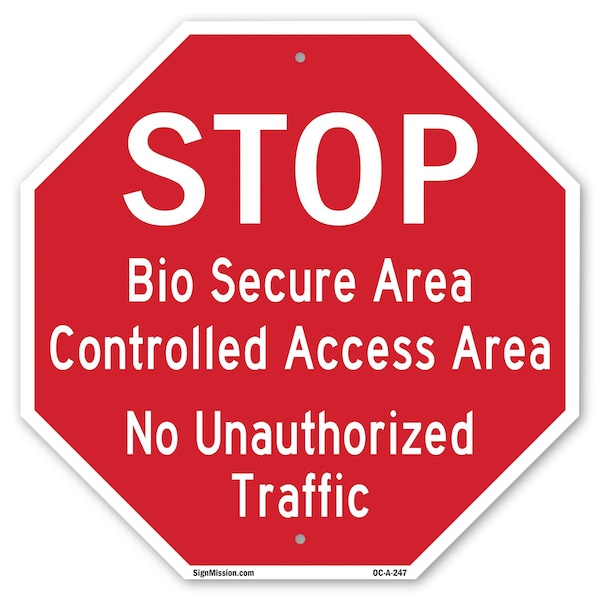 Stop Bio Secure Area Controlled Acc, 6 Inch X 6 Inch, Plastic Sign