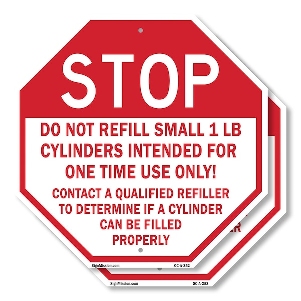 Stop Do Not Refill Small 1 Lb. Cyli, 6 inch X 6 inch, Plastic Sign, 2PK