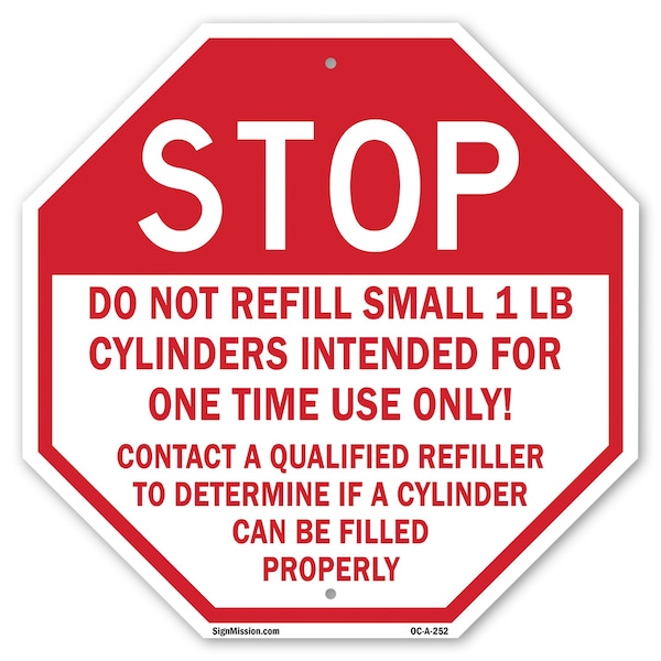 Stop Do Not Refill Small 1 Lb. Cyli, 6 Inch X 6 Inch, Plastic Sign