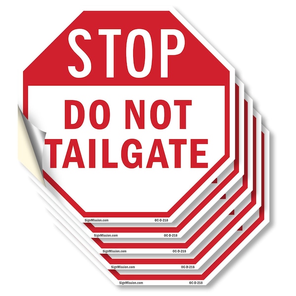 Stop Do Not Tailgate, 4 inch X 4 inch, Vinyl Decal, 5PK