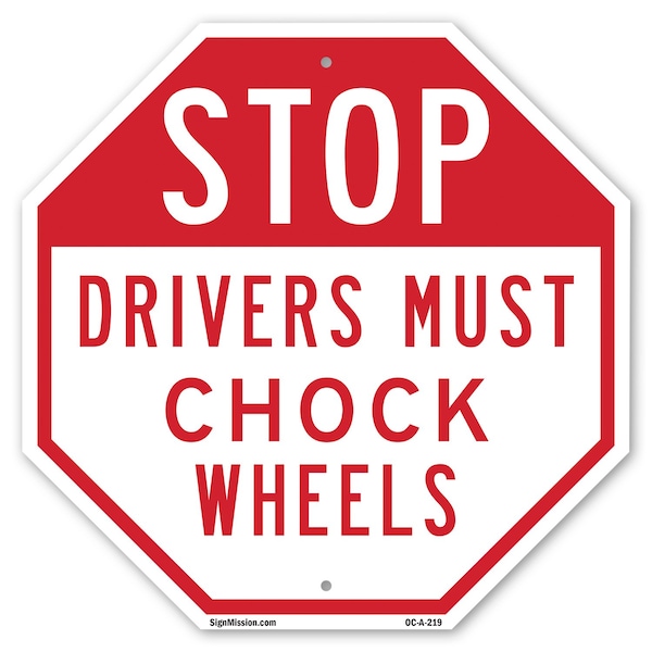 Stop Drivers Must Chock Wheels, 10 Inch X 10 Inch, Plastic Sign