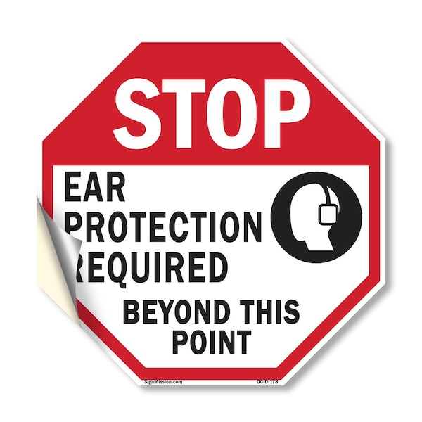 Stop Ear Protection Required Beyond, 10 Inch X 10 Inch, Vinyl Decal