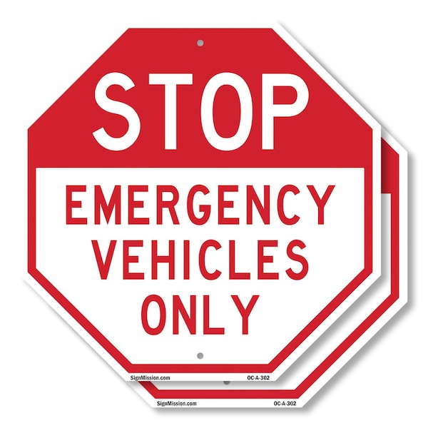 Stop Emergency Vehicles Only, 6 inch X 6 inch, Plastic Sign, 2PK