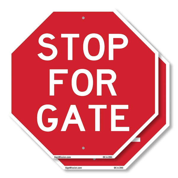 Stop For Gate, 10 inch X 10 inch, Plastic Sign, 2PK
