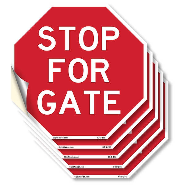 Stop For Gate, 6 inch X 6 inch, Vinyl Decal, 5PK
