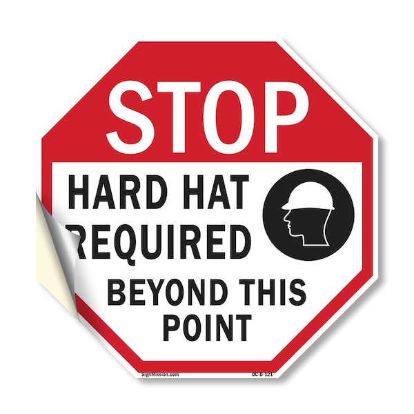 Stop Hard Hat Required Beyond This, 18 Inch X 18 Inch, Vinyl Decal