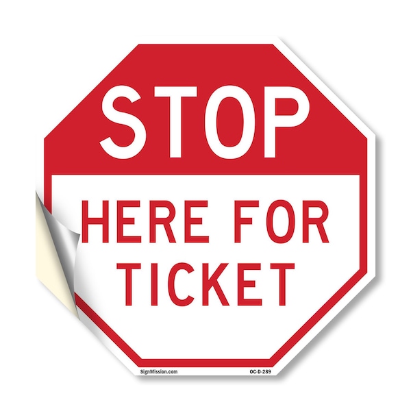 Stop Here for Ticket, 10 Inch X 10 Inch, Vinyl Decal