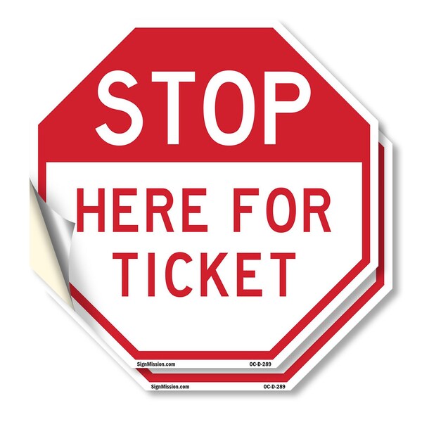 Stop Here for Ticket, 4 inch X 4 inch, Vinyl Decal, 2PK
