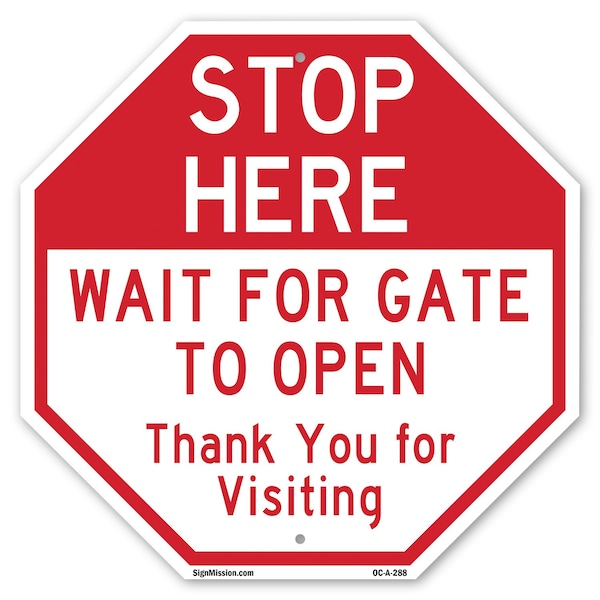 Stop Here Wait for Gate to Open Tha, 6 Inch X 6 Inch, Plastic Sign