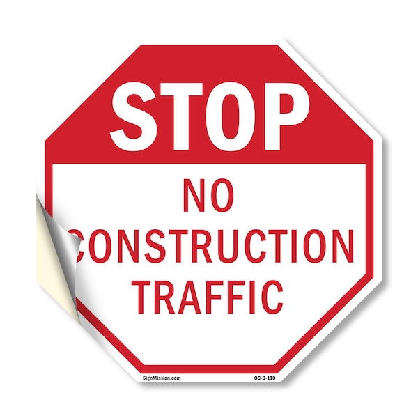Stop No Construction Traffic, 10 Inch X 10 Inch, Vinyl Decal