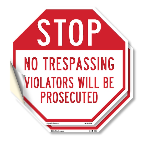 Stop No Trespassing Violators Will, 4 inch X 4 inch, Vinyl Decal, 2PK