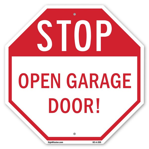 Stop Open Garage Door!, 6 Inch X 6 Inch, Plastic Sign
