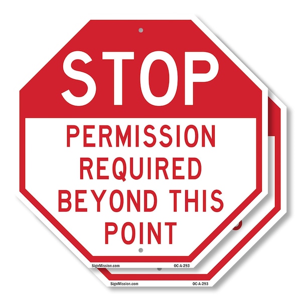Stop Permission Required Beyond Thi, 6 inch X 6 inch, Plastic Sign, 2PK