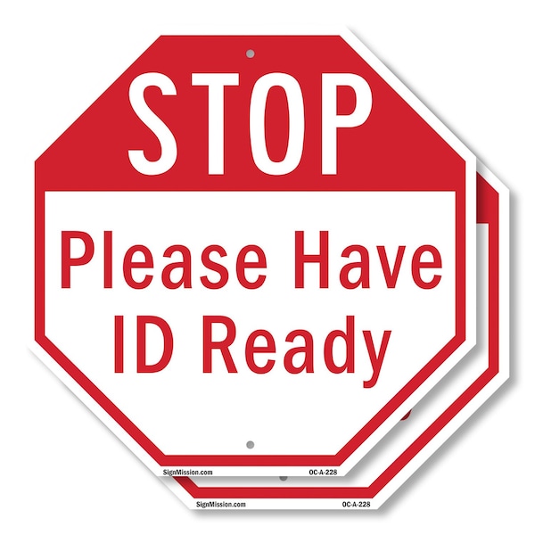 Stop Please Have Id Ready, 6 inch X 6 inch, Plastic Sign, 2PK