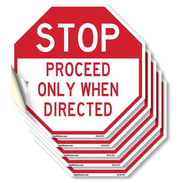 Stop Proceed Only When Directed, 4 inch X 4 inch, Vinyl Decal, 5PK
