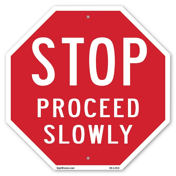 Stop Proceed Slowly, 6 Inch X 6 Inch, Plastic Sign
