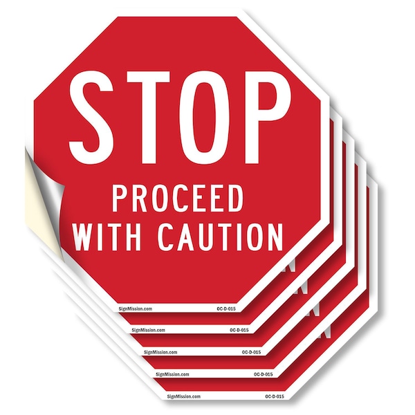 Stop Proceed with Caution, 4 inch X 4 inch, Vinyl Decal, 5PK