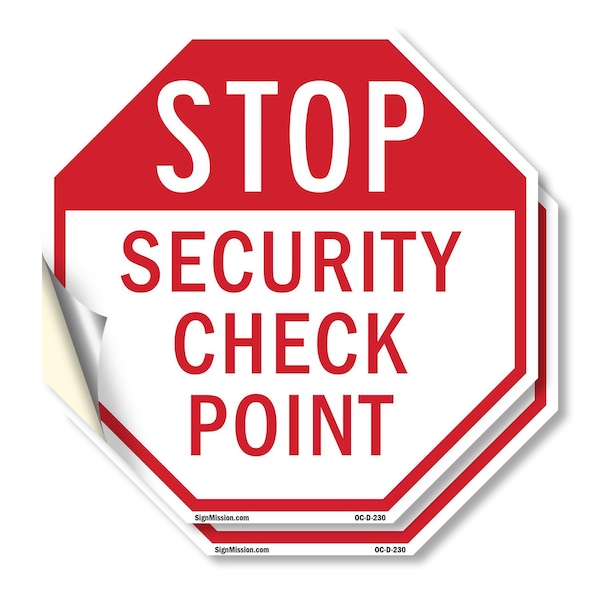 Stop Security Check Point, 4 inch X 4 inch, Vinyl Decal, 2PK