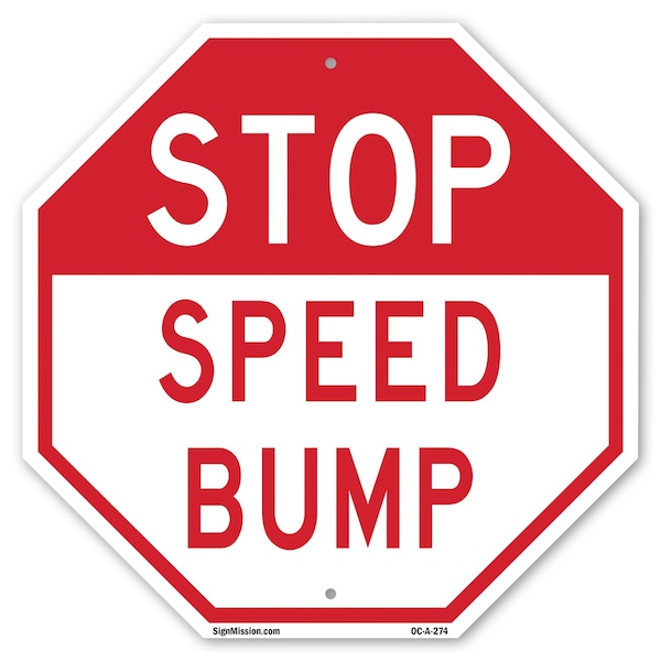 Stop Speed Bump, 6 Inch X 6 Inch, Plastic Sign