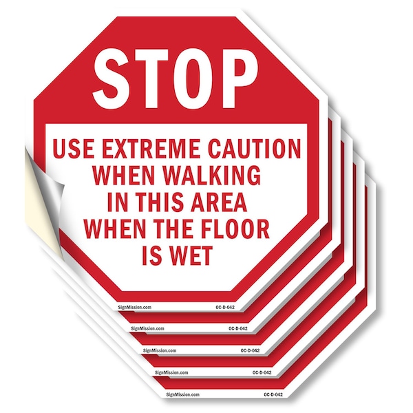 Stop Use Extreme Caution When Walki, 4 inch X 4 inch, Vinyl Decal, 5PK