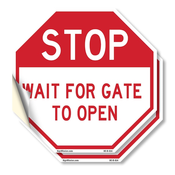Stop Wait for Gate to Open, 4 inch X 4 inch, Vinyl Decal, 2PK