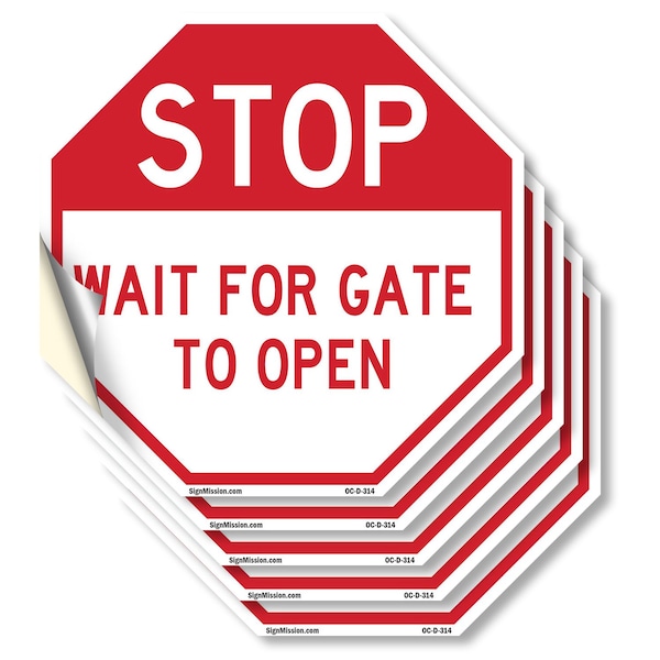 Stop Wait for Gate to Open, 6 inch X 6 inch, Vinyl Decal, 5PK