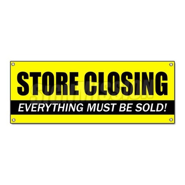 STORE CLOSING BANNER SIGN clearance signs close everything must go forever