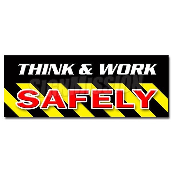 THINK & WORK SAFELYsticker worker osha employee workplace, 12" x 4.5", D-12 Think & Work Safely