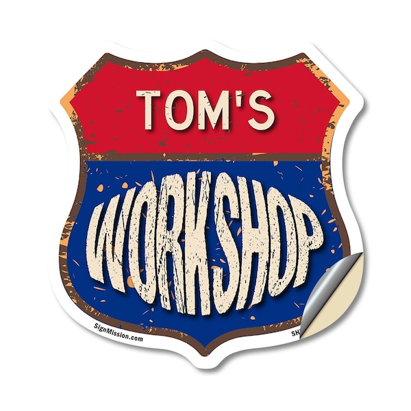 Add a Fun, Personalized Touch to Your Workshop with SignMission's Custom Shield-Shaped Vinyl Decals Make your Workshop stand out with a decal that's not just eye-catching, but also full of personality! Our shield-shaped vinyl decals are the perfect way to add a touch of fun and style to your space. Featuring your name and a sleek, bold design, these decals bring a modern, professional vibe to any Workshop, workshop, or man cave. With their vibrant look and high-quality vinyl construction, they'll grab attention and give your space that extra bit of flair for years to come. Bring Durable Style to Your Workshop Our shield-shaped decals are designed with premium 3M UV-protected, weather-resistant vinyl to ensure a long-lasting finish. Perfect for indoor and outdoor use, these decals are resistant to fading, cracking, and peeling. With an easy peel-and-stick application, you can quickly add your personalized touch to walls, doors, windows, or toolboxes. Wherever you place it, this decal adds character and charm that will stand the test of time.