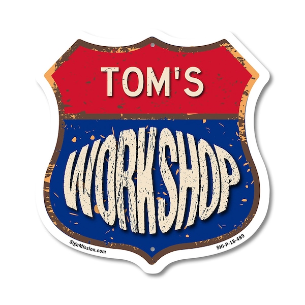 Add a Fun, Personalized Touch to Your Workshop with SignMission's Custom Shield-Shaped Signs Make your Workshop stand out with a sign that's not just eye-catching, but also full of personality! Our shield-shaped signs are the perfect way to add a touch of fun and style to your space. Featuring your name and a sleek, polished design, these signs are crafted to bring a modern, professional vibe to any Workshop, workshop, or man cave. With their bold look and durable commercial-grade plastic construction, they'll grab attention and give your space that extra bit of flair for years to come. Bring Modern Durability to Your Workshop Our shield-shaped signs aren't just stylish-they're designed with long-lasting, commercial-grade plastic that ensures both a sleek finish and unbeatable durability. Perfect for any indoor or outdoor space, these signs are resistant to cracking, fading, and weather damage. They come with pre-drilled holes for easy mounting, so you can display them effortlessly wherever they look best. Give your Workshop a polished and timeless appeal with a sign that combines charm and toughness. Our shield-shaped signs are expertly crafted to bring both style and resilience to your space while featuring your personalized touch.