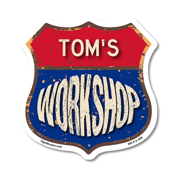 Add a Fun, Personalized Touch to Your Workshop with SignMission's Custom Shield-Shaped Signs Make your Workshop stand out with a sign that's not just eye-catching, but also full of personality! Our shield-shaped signs are the perfect way to add a touch of fun and style to your space. Featuring your name and a sleek, polished design, these signs are crafted to bring a modern, professional vibe to any Workshop, workshop, or man cave. With their bold look and durable commercial-grade plastic construction, they'll grab attention and give your space that extra bit of flair for years to come. Bring Modern Durability to Your Workshop Our shield-shaped signs aren't just stylish-they're designed with long-lasting, commercial-grade plastic that ensures both a sleek finish and unbeatable durability. Perfect for any indoor or outdoor space, these signs are resistant to cracking, fading, and weather damage. They come with pre-drilled holes for easy mounting, so you can display them effortlessly wherever they look best. Give your Workshop a polished and timeless appeal with a sign that combines charm and toughness. Our shield-shaped signs are expertly crafted to bring both style and resilience to your space while featuring your personalized touch.