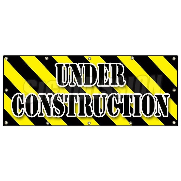 UNDER CONSTRUCTION BANNER SIGN workers construction demolition crew