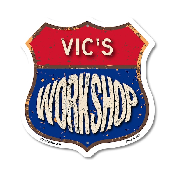 Add a Fun, Personalized Touch to Your Workshop with SignMission's Custom Shield-Shaped Signs Make your Workshop stand out with a sign that's not just eye-catching, but also full of personality! Our shield-shaped signs are the perfect way to add a touch of fun and style to your space. Featuring your name and a sleek, polished design, these signs are crafted to bring a modern, professional vibe to any Workshop, workshop, or man cave. With their bold look and durable commercial-grade plastic construction, they'll grab attention and give your space that extra bit of flair for years to come. Bring Modern Durability to Your Workshop Our shield-shaped signs aren't just stylish-they're designed with long-lasting, commercial-grade plastic that ensures both a sleek finish and unbeatable durability. Perfect for any indoor or outdoor space, these signs are resistant to cracking, fading, and weather damage. They come with pre-drilled holes for easy mounting, so you can display them effortlessly wherever they look best. Give your Workshop a polished and timeless appeal with a sign that combines charm and toughness. Our shield-shaped signs are expertly crafted to bring both style and resilience to your space while featuring your personalized touch.